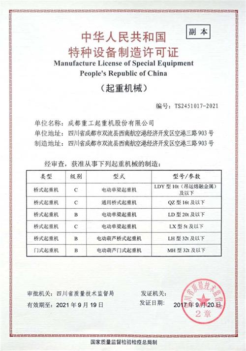 [ 發(fā)布日期:2018-6-8 來源:成都重工起重機(jī)股份有限公司 瀏覽次數(shù):5566 ]