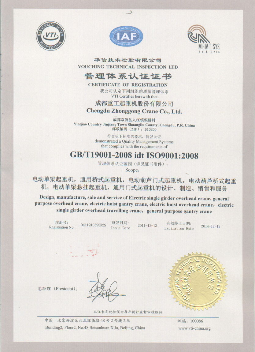 [ 發(fā)布日期:2014-5-6 來源:成都重工起重機(jī)股份有限公司 瀏覽次數(shù):5128 ]